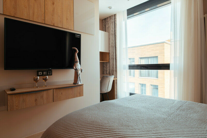 Номерной фонд представлен двумя светлыми и просторными категориями, выполненными в современном стиле. Каждая из них оснащена эргономичной мебелью, кондиционером, шкафом, звукоизоляцией, рабочим столом, сейфом и телевизором. В собственной ванной комнате также есть всё необходимое для комфорта и удобства гостей, а именно: фен, стиральная машина, тапочки и гигиенические принадлежности.