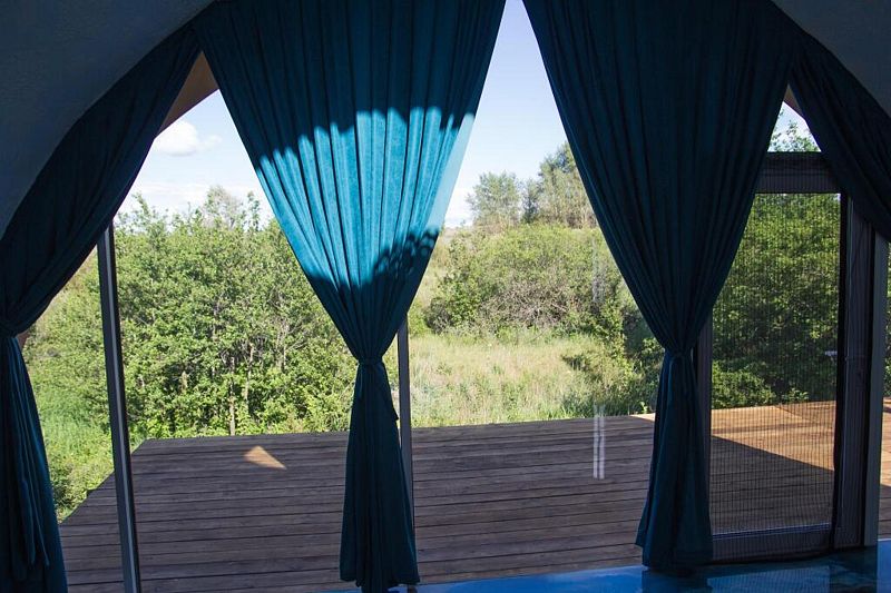 Днём можно насладиться природой, вдохнуть чистый воздух с нотками трав и хвои соснового леса. Прогуляйтесь по лесу и степи, искупайтесь в реке Медведице, которая находится всего в 1,5 км, или посетите песочные барханы. Также есть возможность отправиться в конный клуб. А вечером и ночью любуйтесь звёздным небом через зенитное окно. Особая акустика дома сделает ваши беседы незабываемыми.