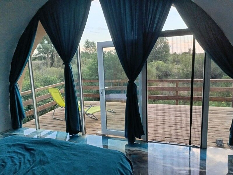 Купольный дом готов подарить тепло и уют, разместив до четырёх гостей на двух двуспальных кроватях. В доме есть всё необходимое для комфортного проживания.