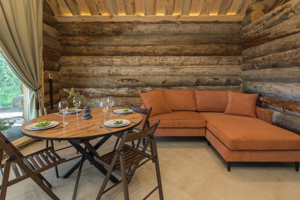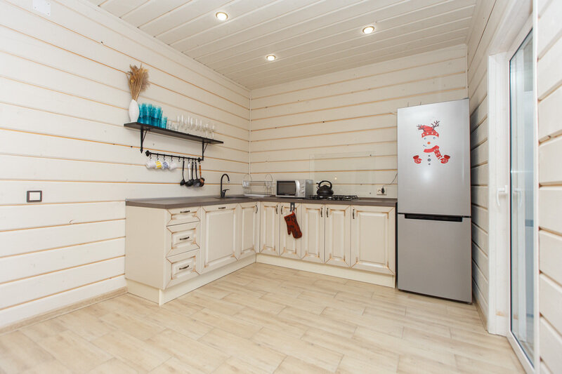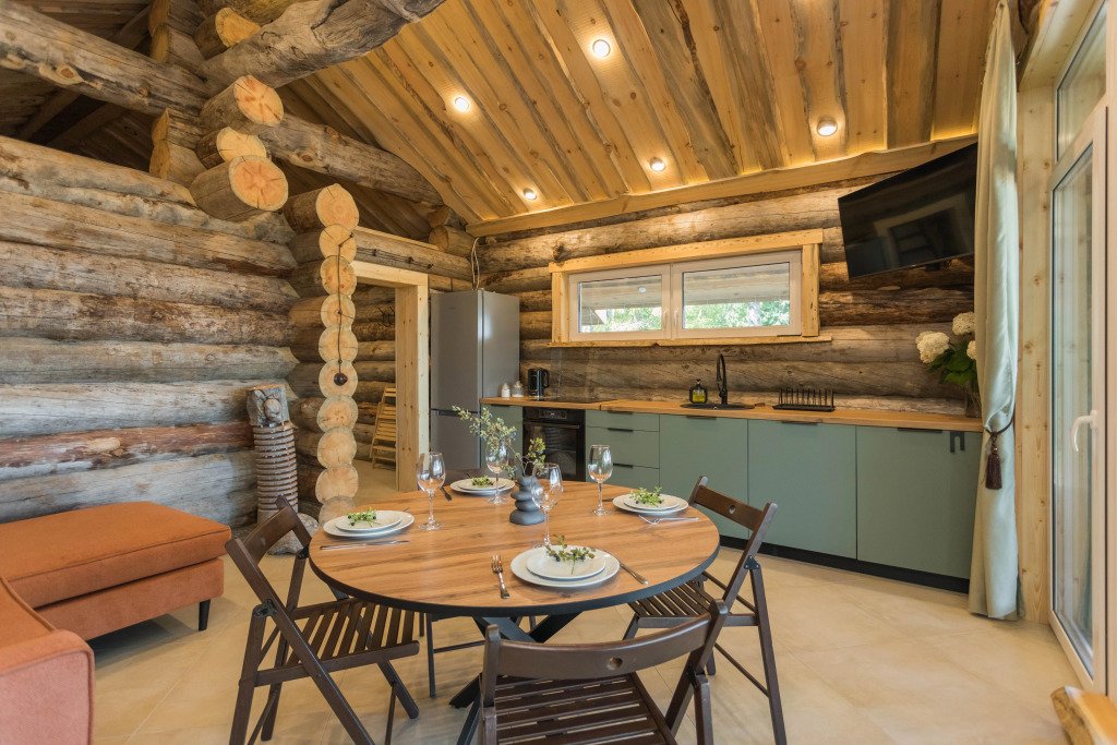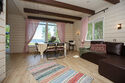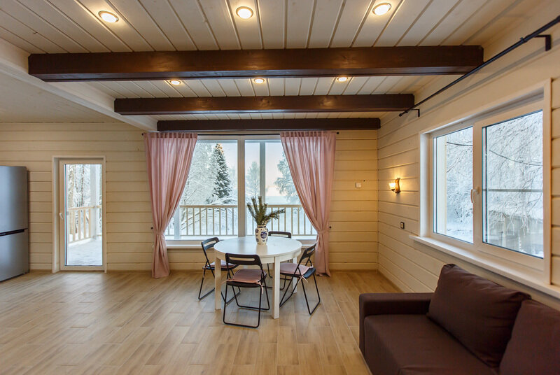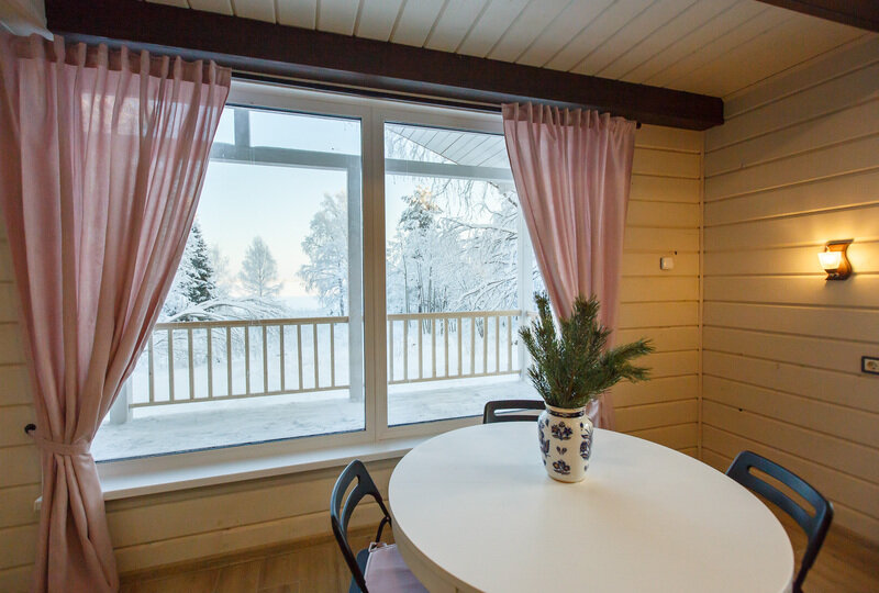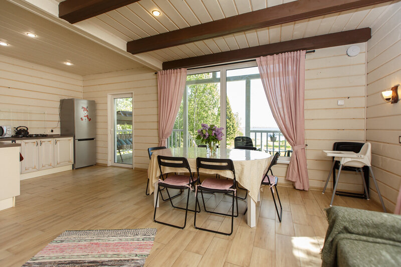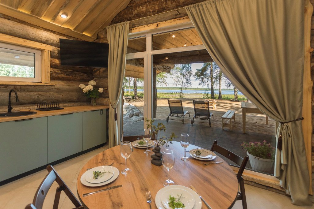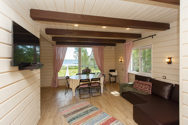 Внутри дома есть все необходимое для комфортного отдыха: просторная кухня с гостиной, две отдельные спальни и сауна на дровах, включённая в стоимость. Рядом с домом оборудована зона барбекю. Вы также можете наслаждаться панорамным видом на озеро с террасы и отобедать на свежем воздухе.