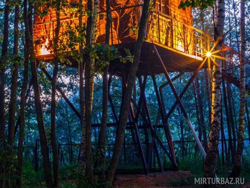 Одна спальная комната. Домик на ветвях, просторная терраса с видом на реку.