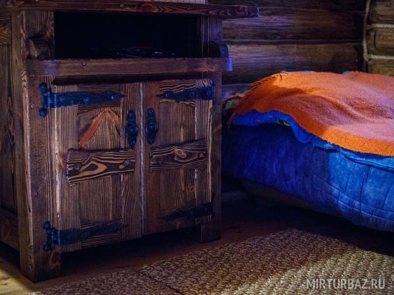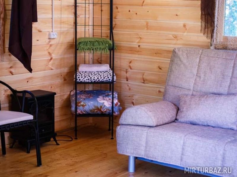 Одна спальная комната. Стилизованный домик домик с уютной русской печкой, душ, туалет, гор вода.