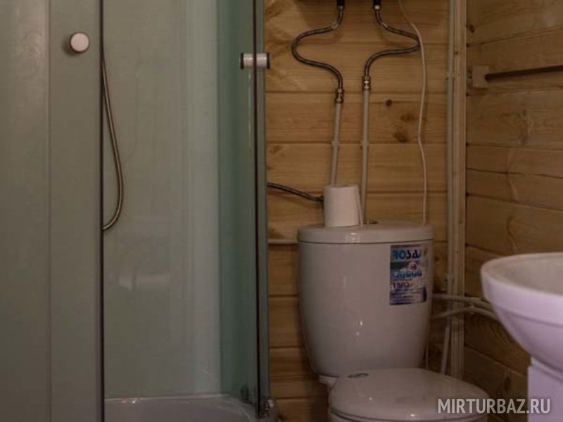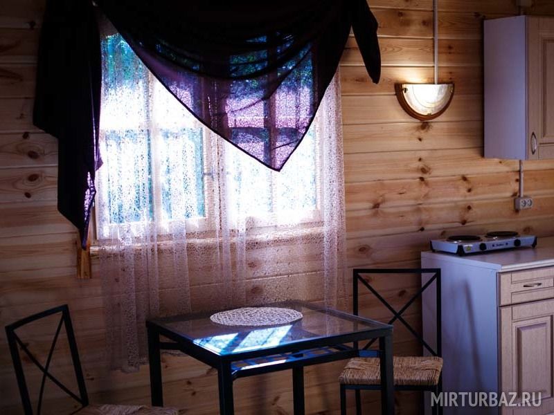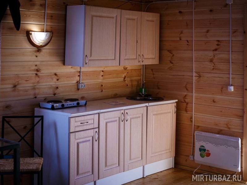 На базе 8 домиков различной вместимости со всеми удобствами. Каждый домик имеет санузел, душевую комнату, оборудованную кухню для приготовления пищи, горячая и холодная вода, отопление.