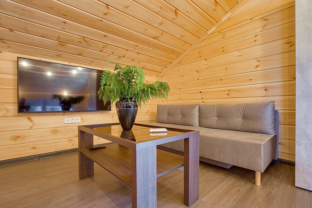 При посуточной аренде в бане могут расположиться 2 гостя на раскладном диване.
