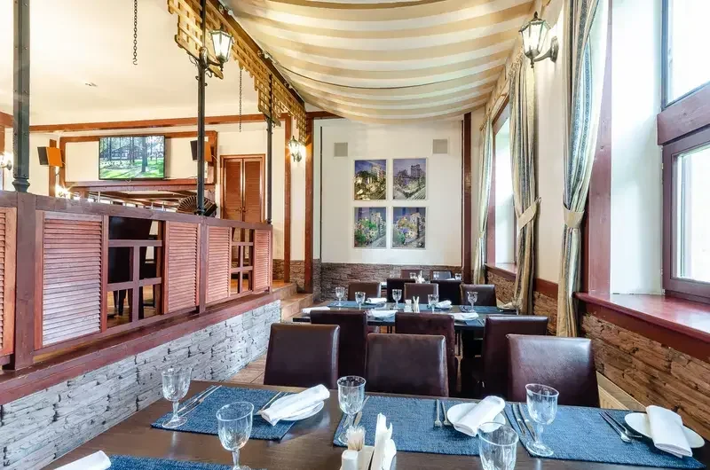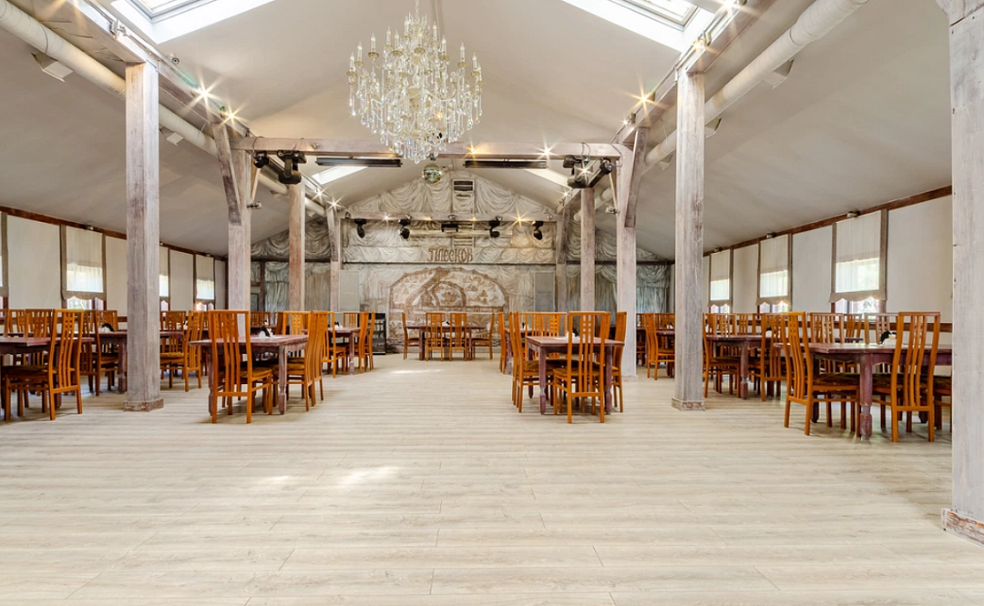 В летний период времени праздник можно организовать на свежем воздухе в Большой беседке с камином. Круглогодично можно отметить торжество в просторном банкетном зале Ресторана. Все залы обеспечены профессиональным звуковым и световым оборудованием.