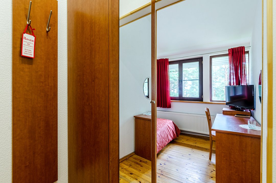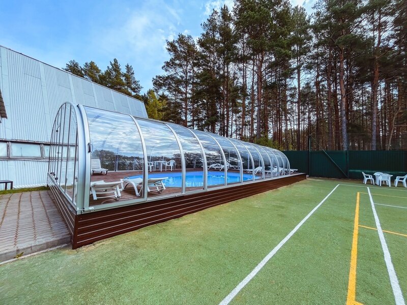 В сосновом бору, где расположен отель можно прогуливаться улочками, отдыхать в беседках, или же отправится в бассейн аква–центра, поплавать с панорамным видом на сосновый лес.