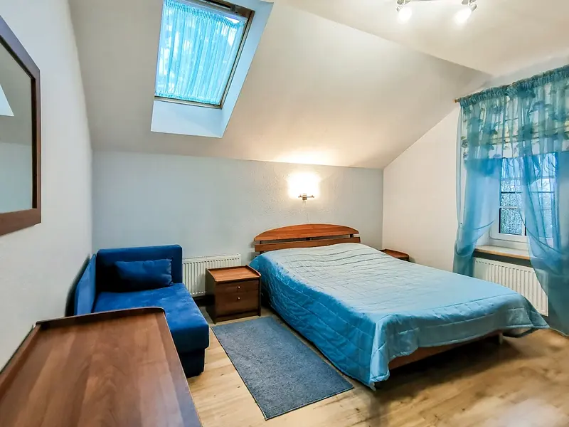 Номер меблирован, оснащен ванной комнатой, кухней и LED-телевизором. В ванной комнате: душ, унитаз, раковина, зеркало, фен, комплект мини-парфюмерии, полотенца. В кухне располагается кухонный гарнитур, варочная поверхность, микроволновка, чайник, холодильник и комплект посуды. Для гостей на кухне - набор для чая/кофе, в спальне - халаты и тапочки. Из окон номера открывается вид на Псковское озеро.