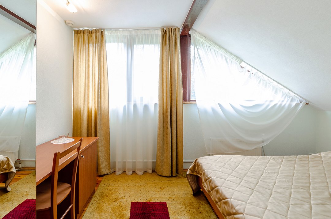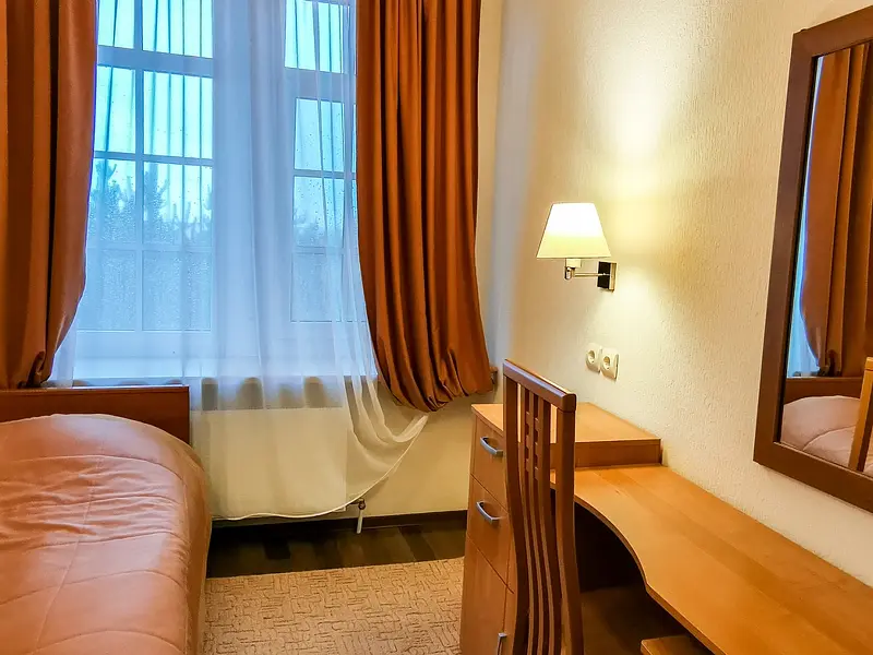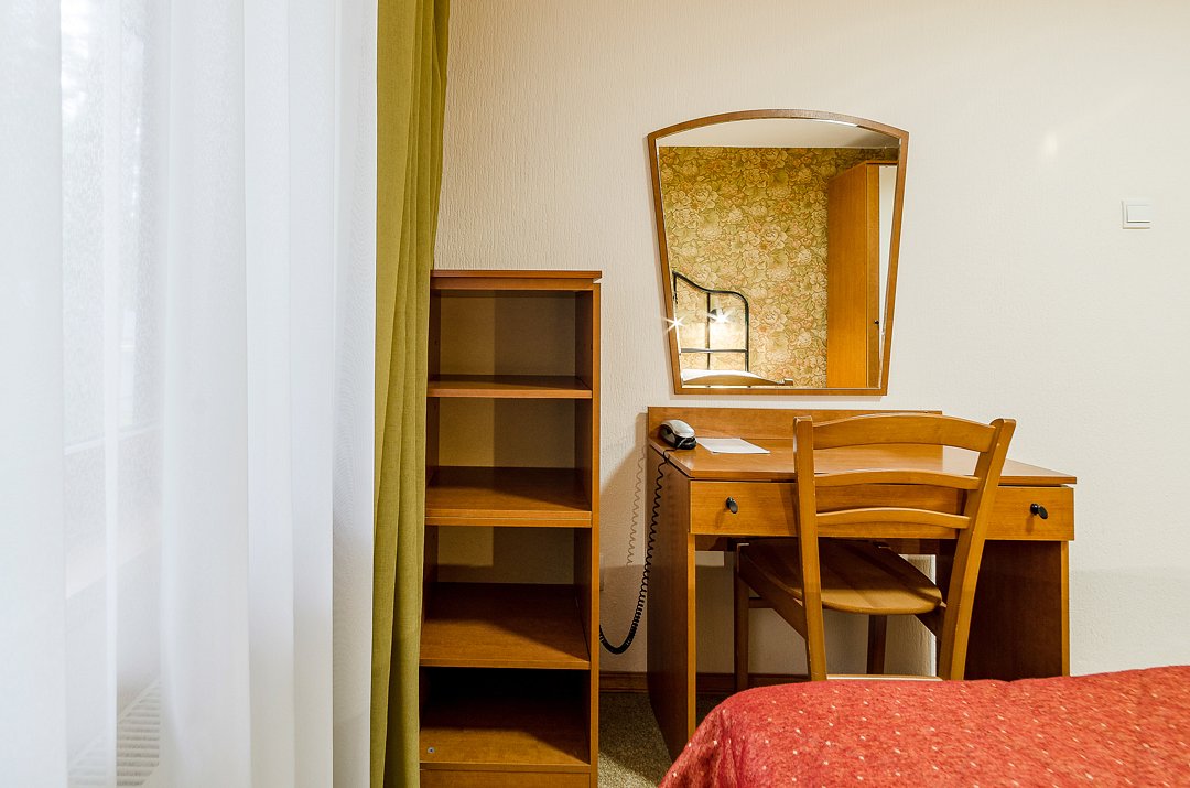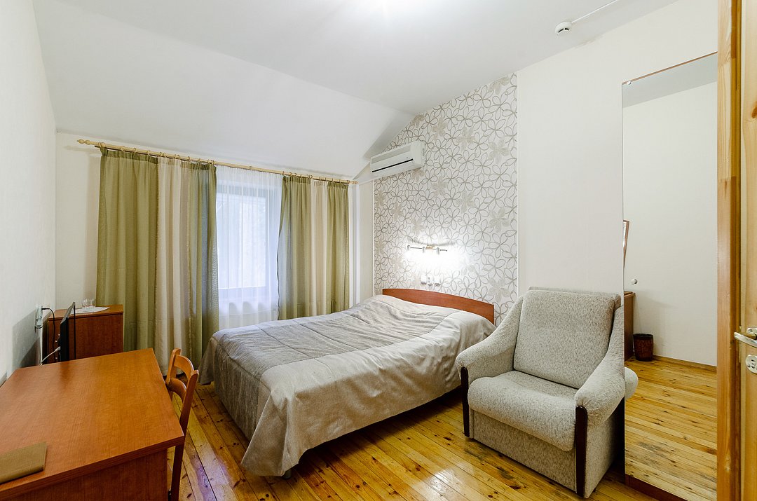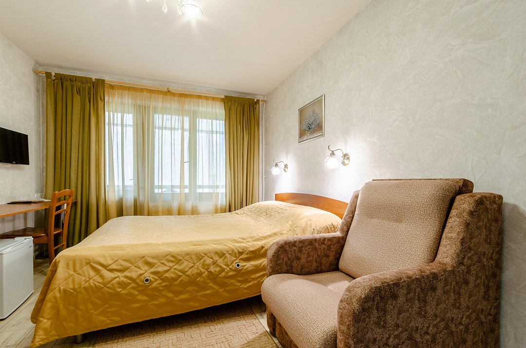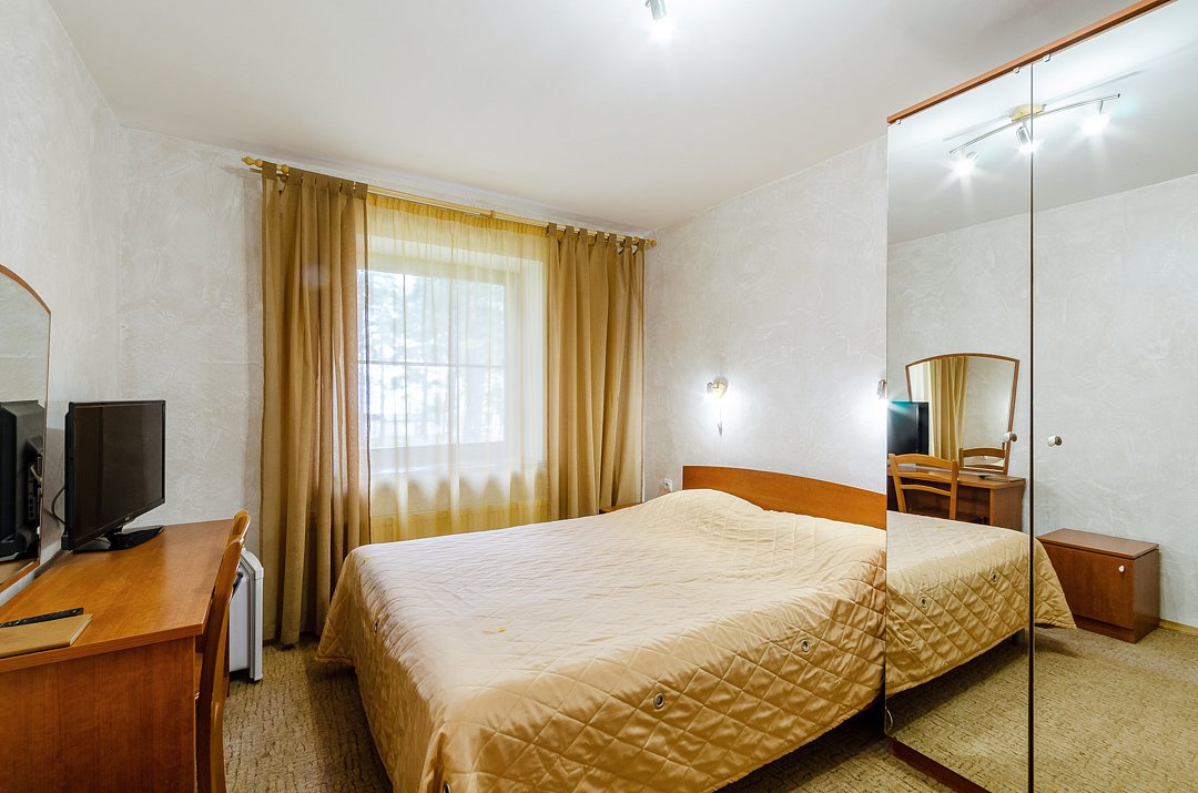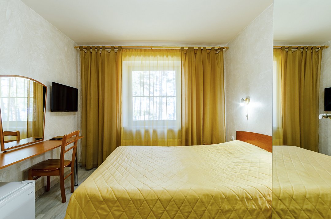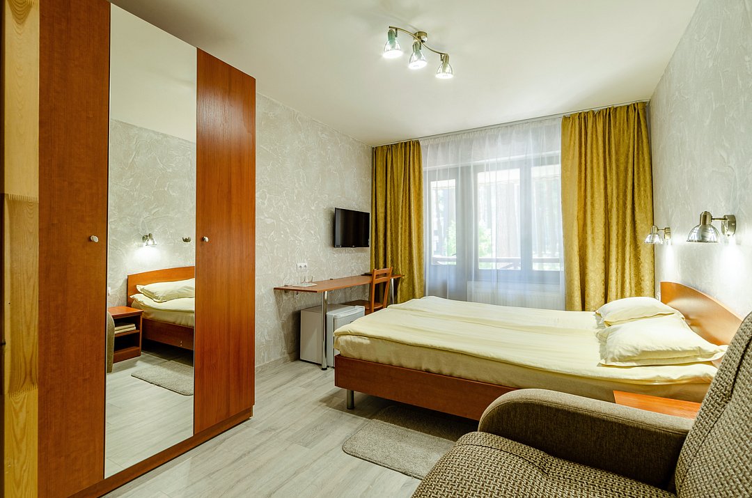 Двухместные однокомнатные номера категории "Стандарт" располагаются в первом и третьем корпусах отеля. Площадь данных номеров от 13 кв. м до 36 кв. м. Все номера меблированы, оснащены ванными комнатами, LED-телевизорами, холодильниками. В ванной комнате: душевая / ванна, унитаз, раковина, зеркало, фен, комплект мини-парфюмерии, полотенца.