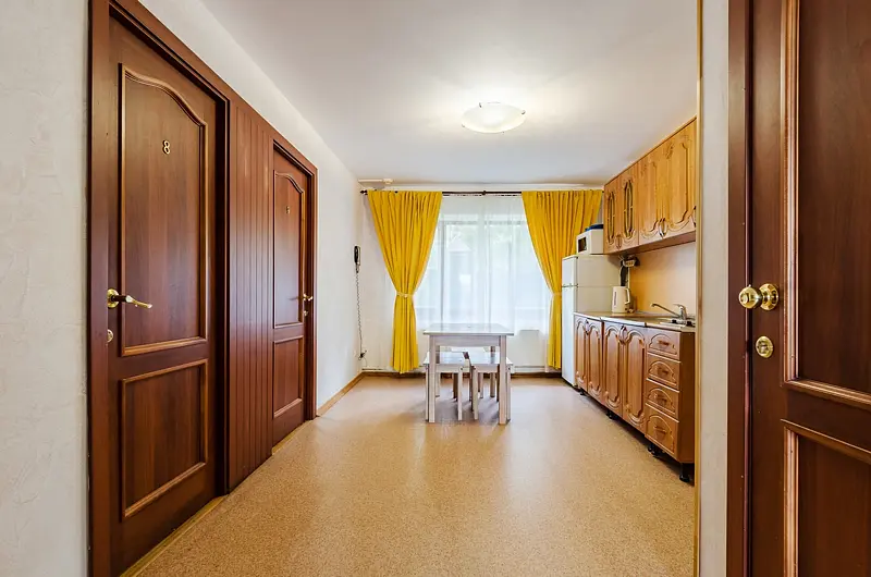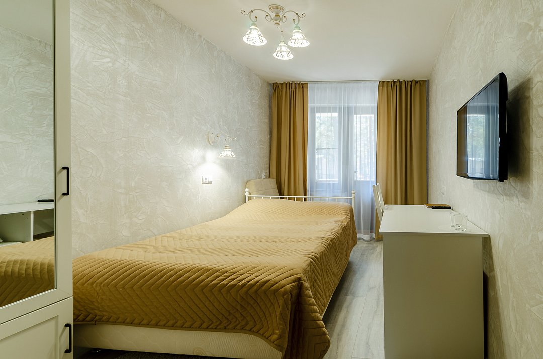 Двухкомнатные двухместные номера категории «Комфорт» располагаются в третьем и четвертом корпусах отеля. Площадь данных номеров от 35 кв.м. до 48 кв.м.