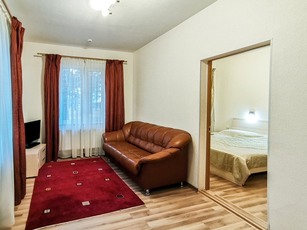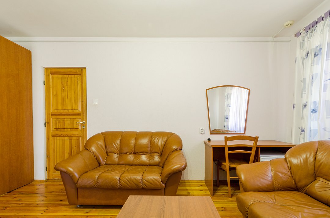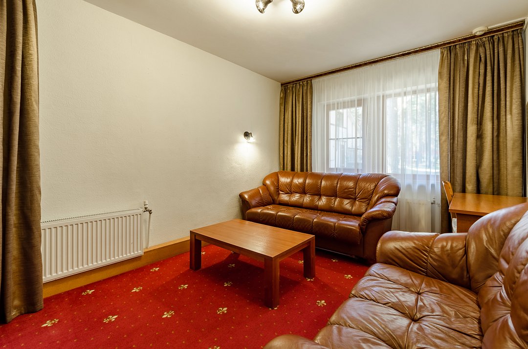 Во всех номерах данной категории раскладывается двуспальный диван в гостиной, что позволяет дополнительно разместить взрослых гостей или детей.