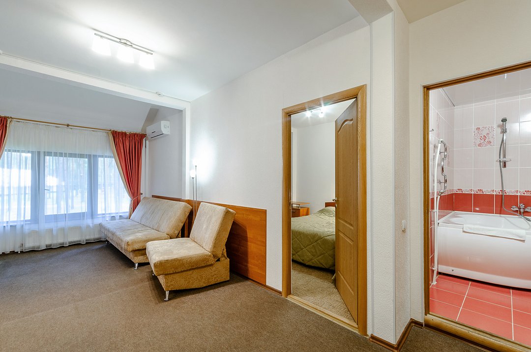 Номер подходит для одноместного VIP-размещения или для семьи.