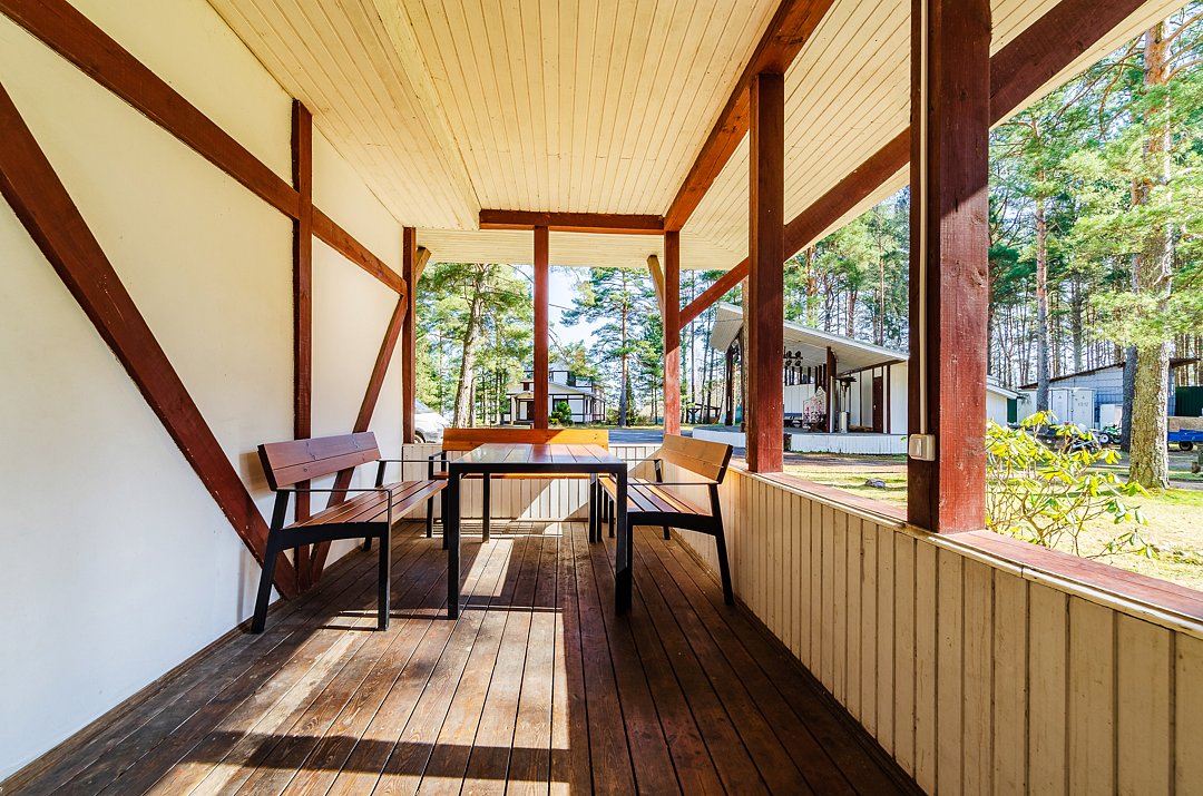В номерах первого этажа выход на террасу, в номерах второго этажа — балкон.