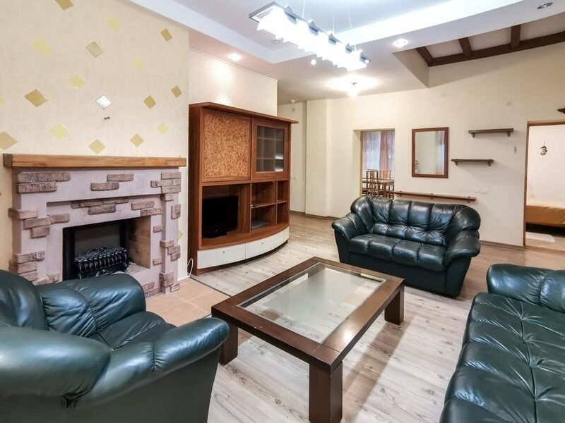 Номер категории «Апартамент vip» располагается на первом этаже четвертого корпуса. Площадь номера 80 м. кв. В номере находится три комнаты: спальня с двуспальной кроватью и односпальным диваном, каминная комната с двумя диванами и отдельная кухня.