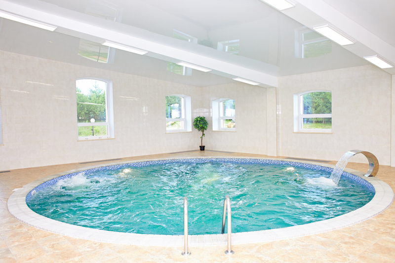 Бассейн диаметром 8 м с комфортной температурой воды, подходящей для взрослых и детей.