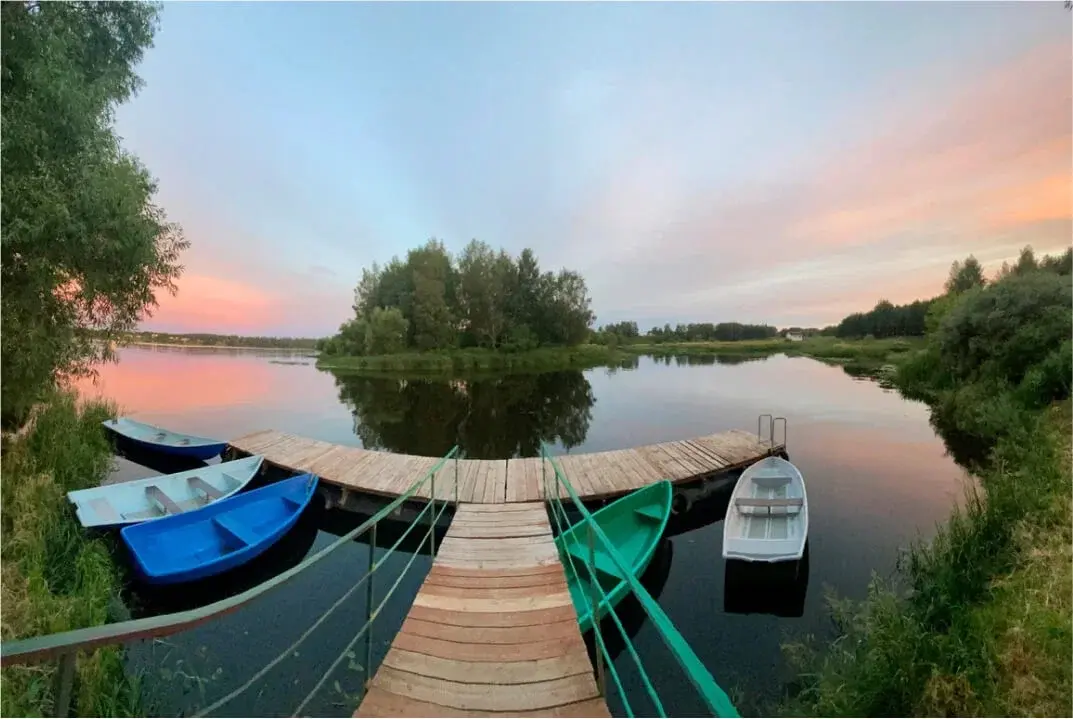На территории отеля созданы все условия для комфортного отдыха в окружении природы: стильные номера с панорамными видами, частная охраняемая территория, зона спа с бассейном, сауной и хаммамом, уютные беседки с мангалами, домики у пруда с карпами, собственный причал с лодками и сапбордами. Для любителей активного досуга — рыбалка, прогулки по лесным тропам и водным маршрутам.
