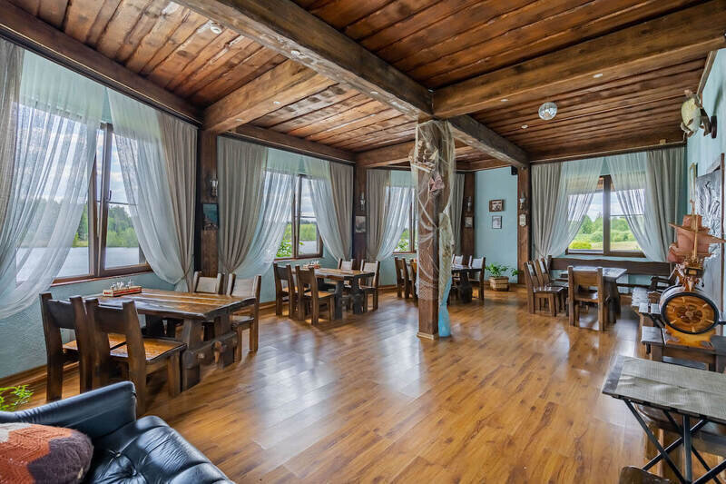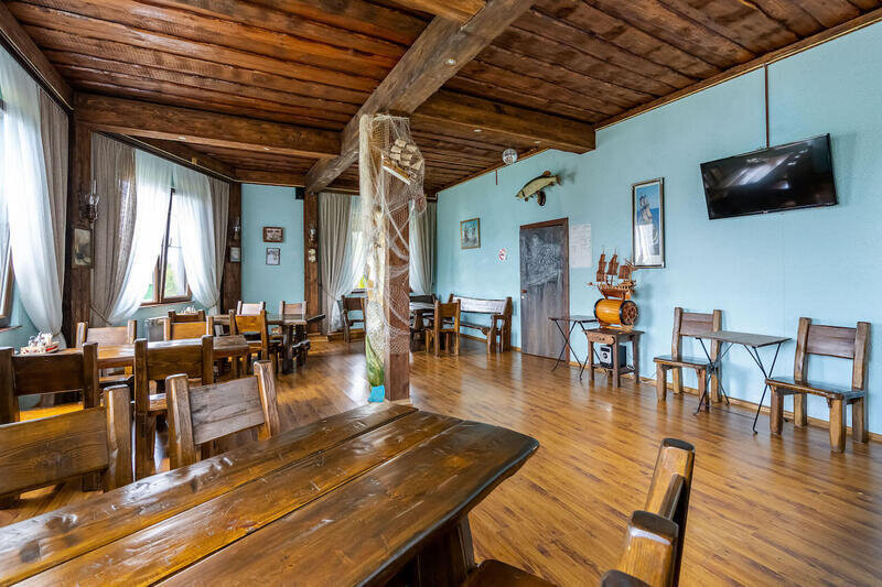 В водном трактире подаются завтраки, обеды и ужины. Зал оформлен в морской тематике, с его окон открывается вид на озеро.