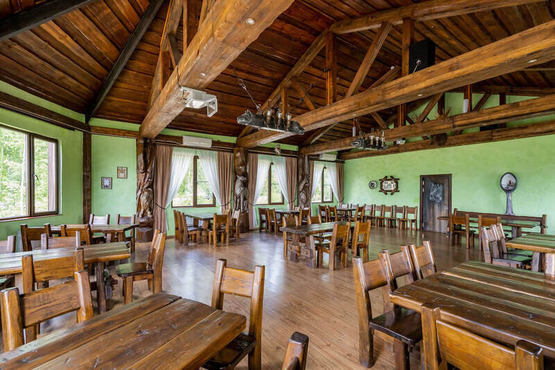 Лесной трактир чаще всего используют для банкетов. День рождения, свадьба или корпоратив - здесь каждый праздник становятся незабываемым. Вместимость лесного трактира: 75 человек.