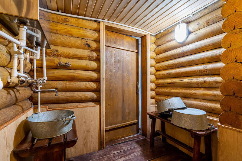 Из минусов: 1. Есть шикарная баня, но почему-то нет душа в бане, только таз для наполнения воды и ковш(хотя кран и место для этого имеются) в предбаннике.