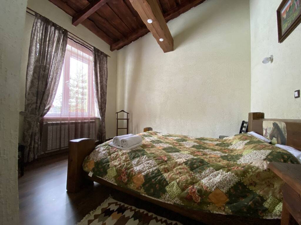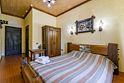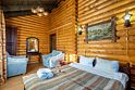 Номер с отдельным выходом и собственной зоной отдыха, в стиле шале, с высокими потолками и потолочными балками. Оснащен 2-спальной кроватью из массива дерева ручной работы с росписями у изголовья.