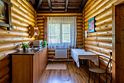 Гостевой дом из бруса со всеми удобствами, состоящий из двух спален, гостиной, кухни, сан узлом. Оснащен мебелью из массива дерева, ЖКТ телевизором 20 каналов, душевой кабиной, современной сантехникой и мебелью из массива дерева. В каждой спальне двуспальная кровать. В гостиной диван кровать с обеденным столом. Кухня оснащена холодильником, микроволновой печью, посудой. Горячая и холодная вода подается круглосуточно. У дома имеется веранда в видом на озеро, установлена беседка с мангалам.