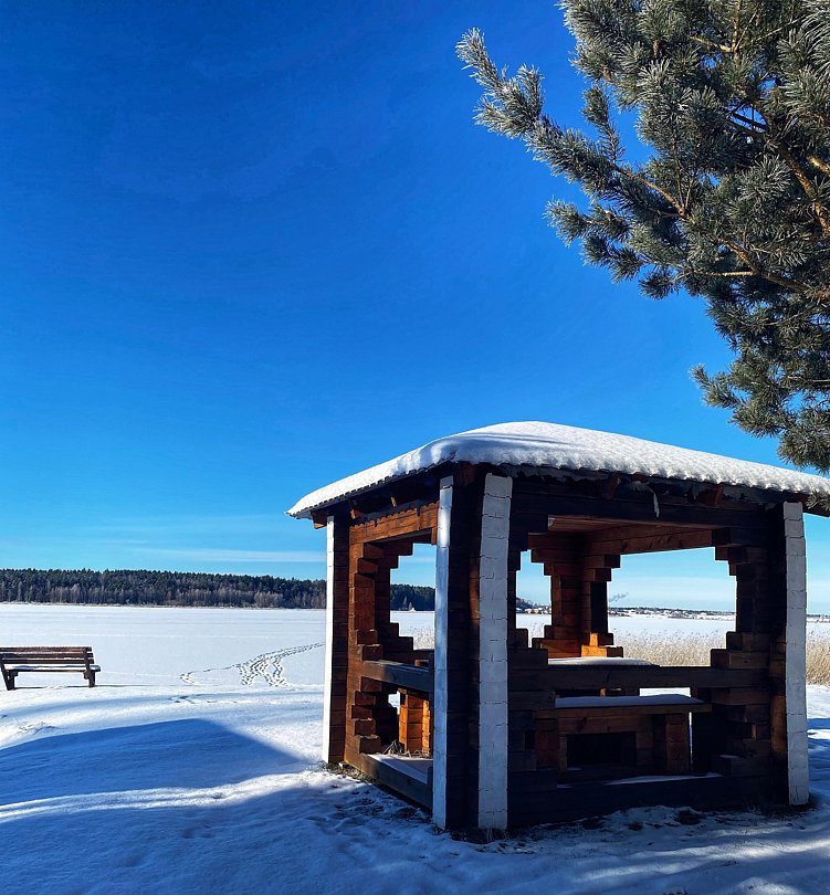 «Озерный рай» предлагает уютную баню, вмещающую до восьми человек. Здесь есть прихожая-гардеробная, комфортная зона отдыха с телевизором, душевая и парилка — идеальные условия для расслабления и общения в кругу друзей.