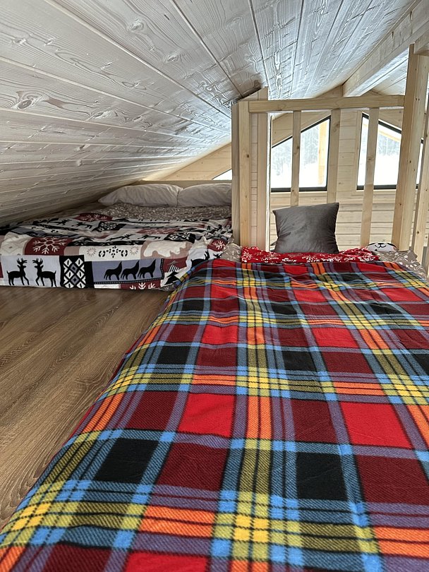 - Двухъярусный домик: На втором этаже вас ждёт двухспальный ортопедический матрас — идеальное место для отдыха и расслабления.