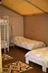Есть все необходимое для комфортного размещения — двуспальная, двухъярусная и две односпальных кровати размера King size с ортопедическим матрасом и отельным постельным бельем, стеллаж и вешалка для вещей, несколько мелочей для «уюта» (плед, ваза, фонарь, коврик).
