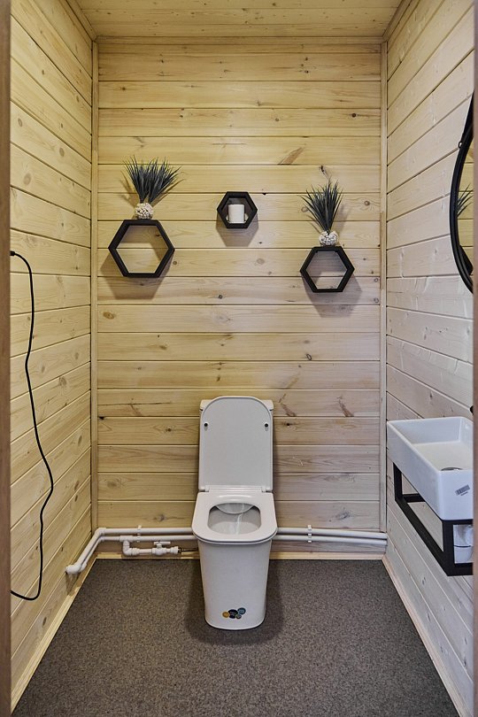 Важная деталь — тент оснащен собственным санузлом с туалетом и раковиной с холодной водой в отдельно стоящем санблоке. Имеется внутреннее и внешнее освещение, розетки. На случай прохладной погоды есть электропростыни.