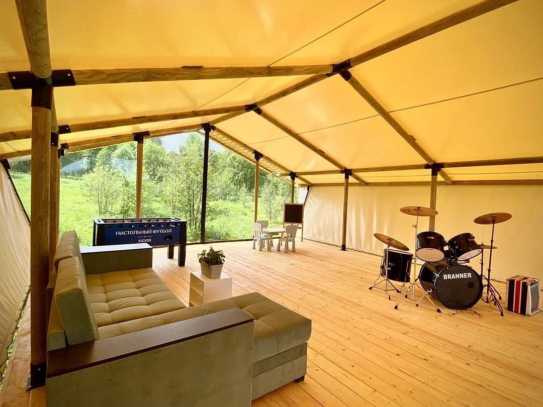 Здесь можно провести спортивные сборы, ретриты, свадьбы и другие торжества. Вместимость шатра — до 200 человек, есть сцена для выступлений.