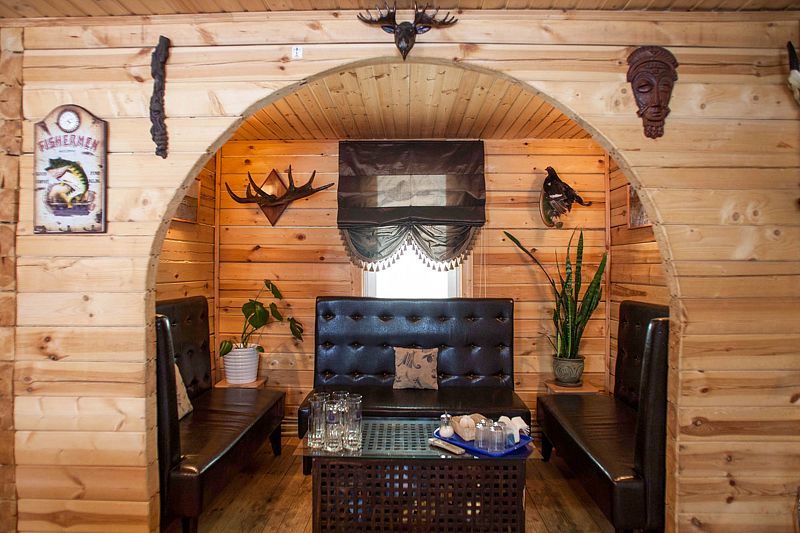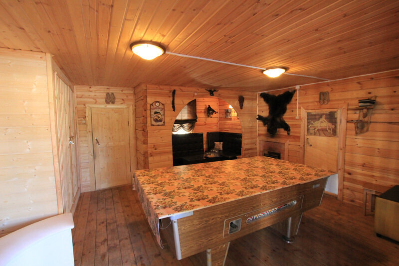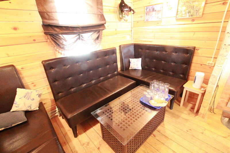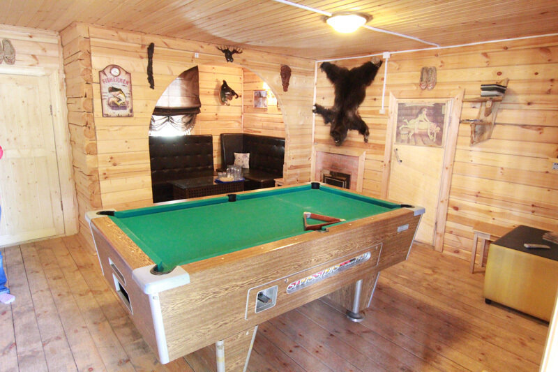 Баня комфортно вмещает одновременно до 8 человек. Для веселого отдыха здесь работает телевизор, музыкальный центр, бильярд и караоке. Минимальный заказ 2 часа.