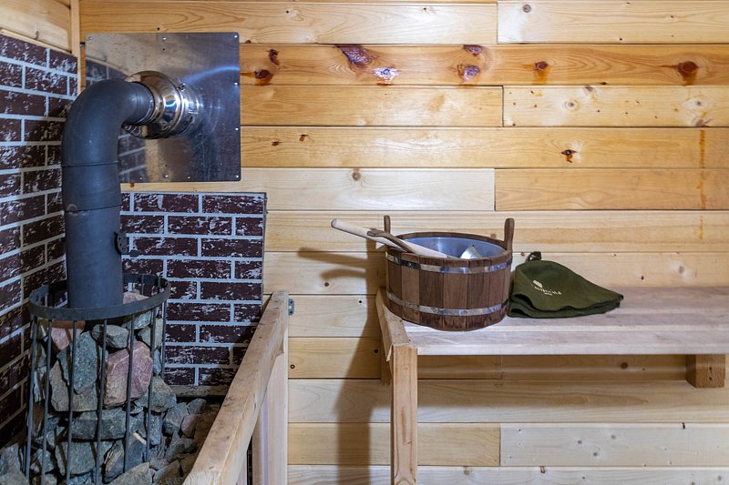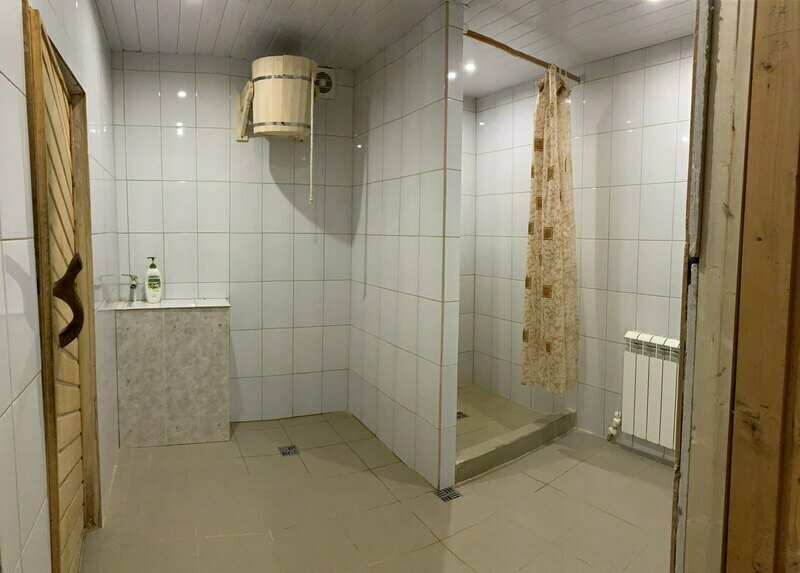 В стоимость услуги входят горячий чай и банный комплект: тапочки, простыня и шапка. Также в бане есть мыло, шампунь и фен.