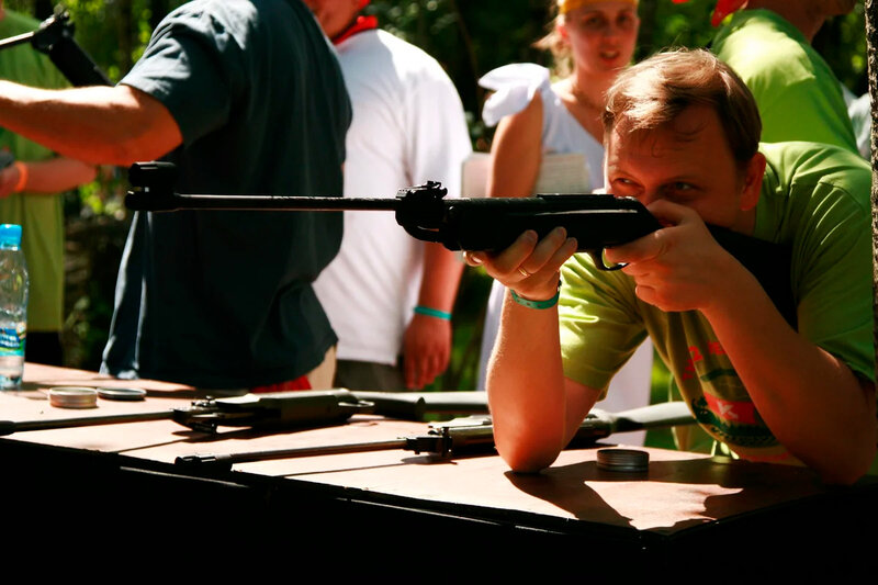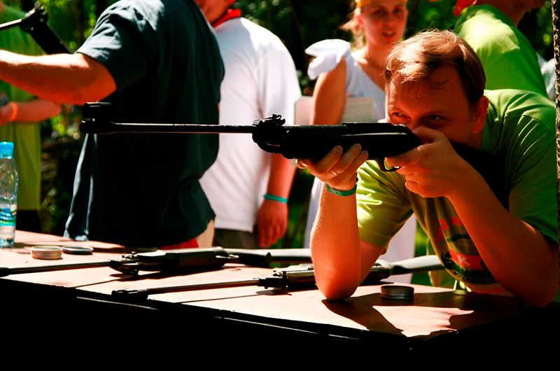 База отдыха Русский Двор предоставляет специальное место, где можно попрактиковаться в стрельбе из пневматических винтовок и пистолетов по мишеням.