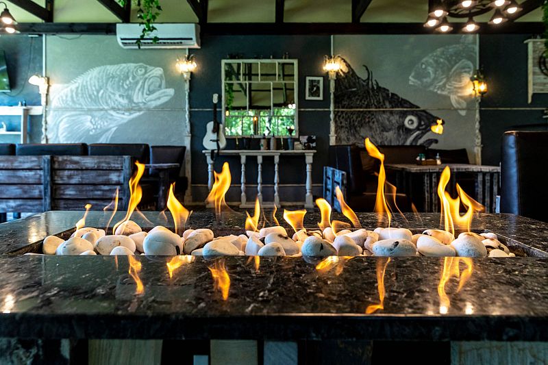 Кроме того, на базе имеются уютные и тёплые домики для рыбаков, в которых можно переночевать, а также вместительные коттеджи. А для вечернего отдыха туристов предоставлен гостевой зал. Вкусно перекусить можно в местном кафе «Сфера», которое также находится в пределах рыболовной базы.