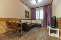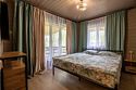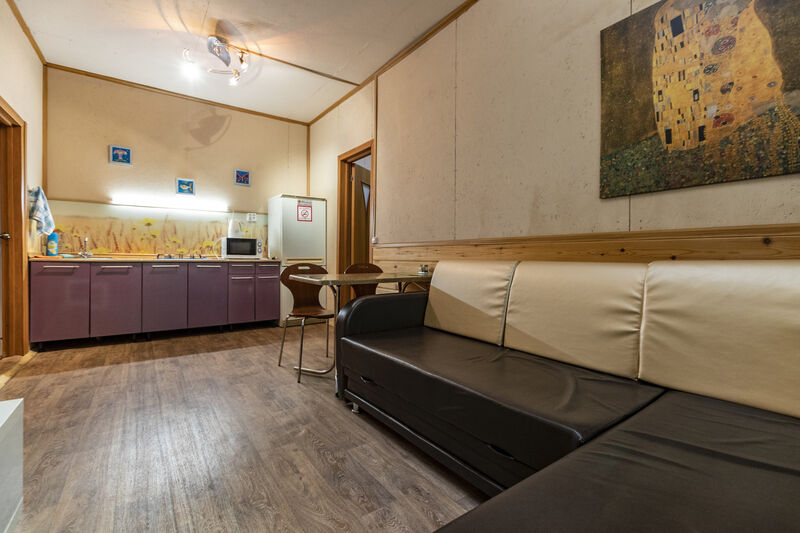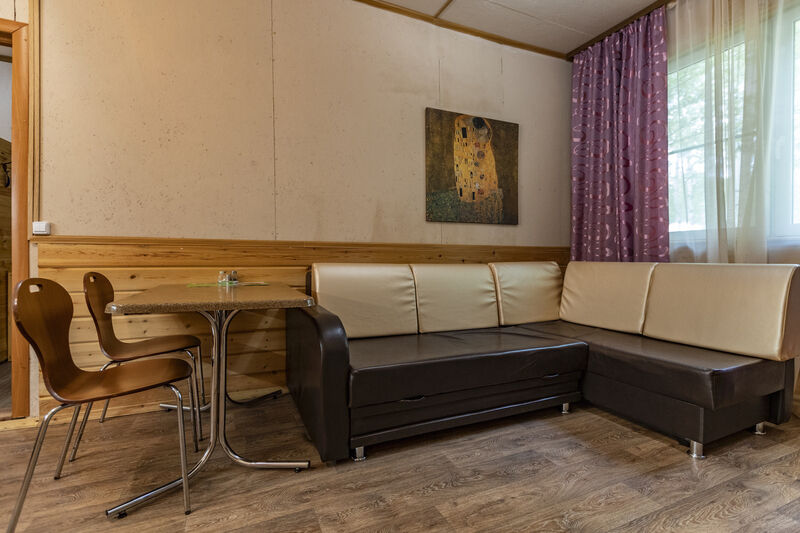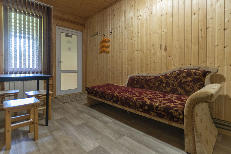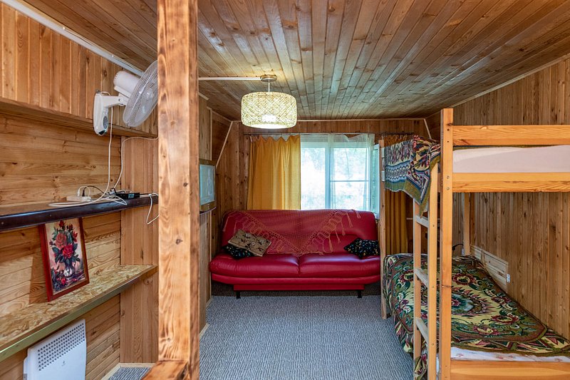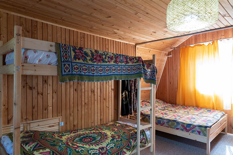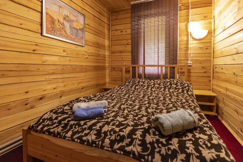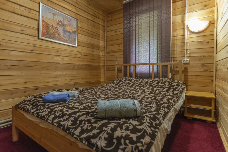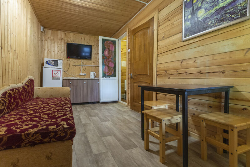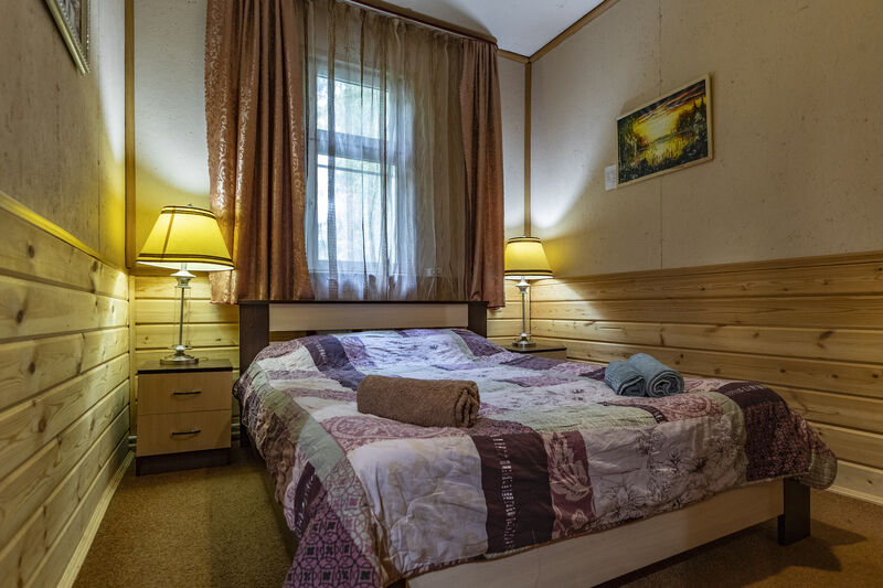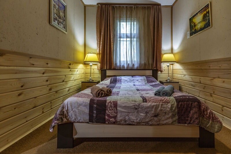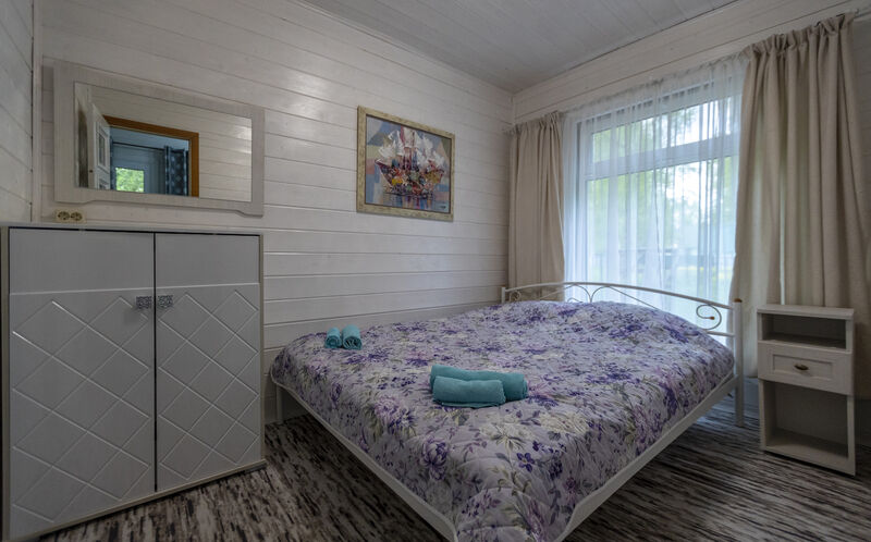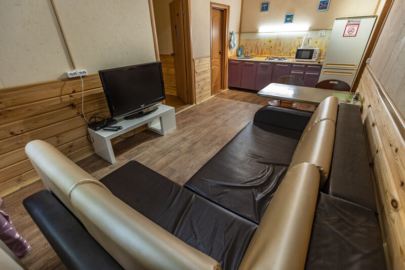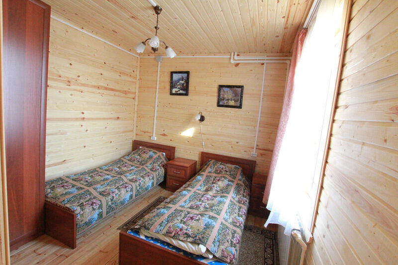 3-х местные двухкомнатные номера. В спальне: две односпальные кровати, две тумбочки, шкаф. В гостиной: раскладной диван, шкаф-прихожая, холодильник с морозильной камерой, стол и стулья, чайник, микроволновая печь, спутниковое TV, душ и туалет. Парковка машины на территории усадьбы, замена белья и полотенец один раз в неделю, уборка в номере один раз в три дня. Пользование сушилкой для вяления рыбы, коптильней горячего копчения и мангалом.
