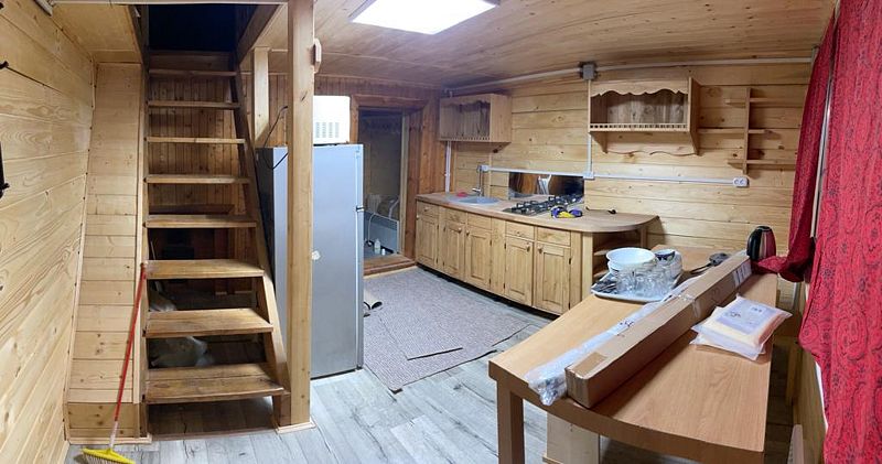 На первом этаже столовая с кухней, сан.узел, парилка на дровах.