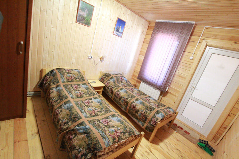 2-х местные номера. В каждом номере две односпальные кровати, две тумбочки, шкаф, холодильник с морозильной камерой, стол и стулья, чайник, спутниковое TV, душ и туалет. Парковка машины на территории усадьбы, замена белья и полотенец один раз в неделю, уборка в номере один раз в три дня. Пользование сушилкой для вяления рыбы, коптильней горячего копчения и мангалом.