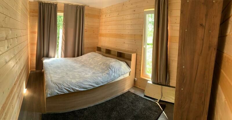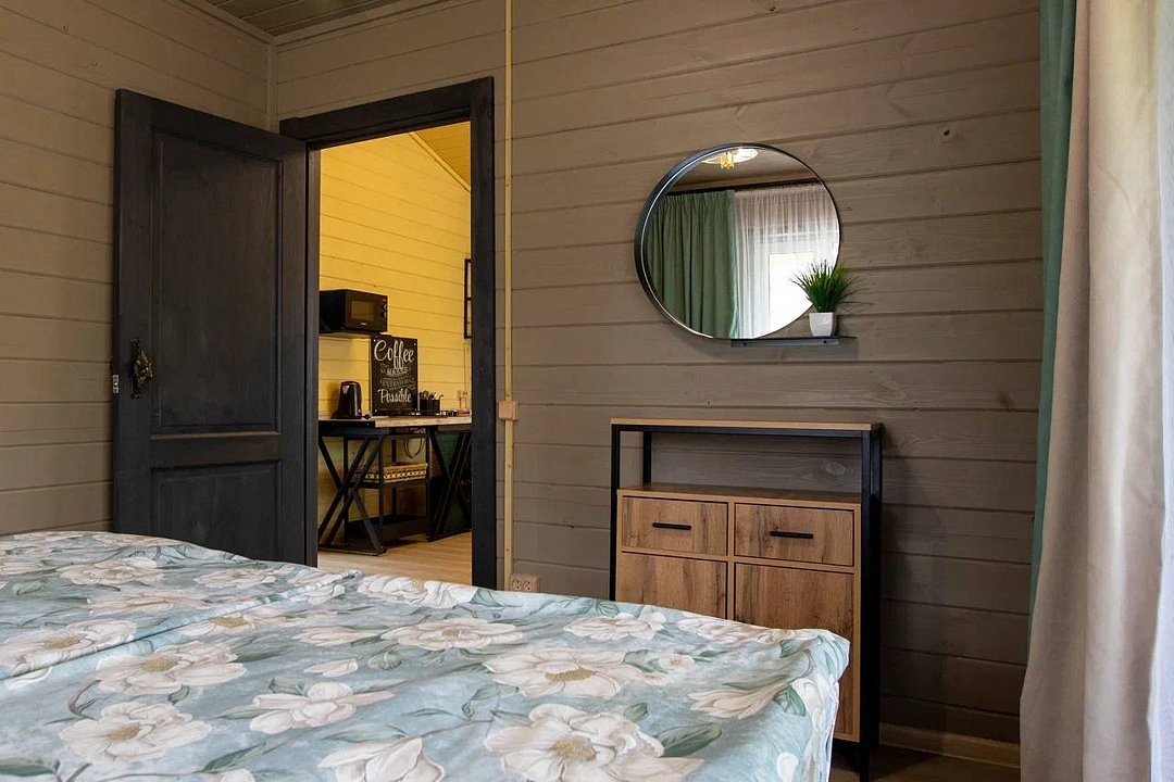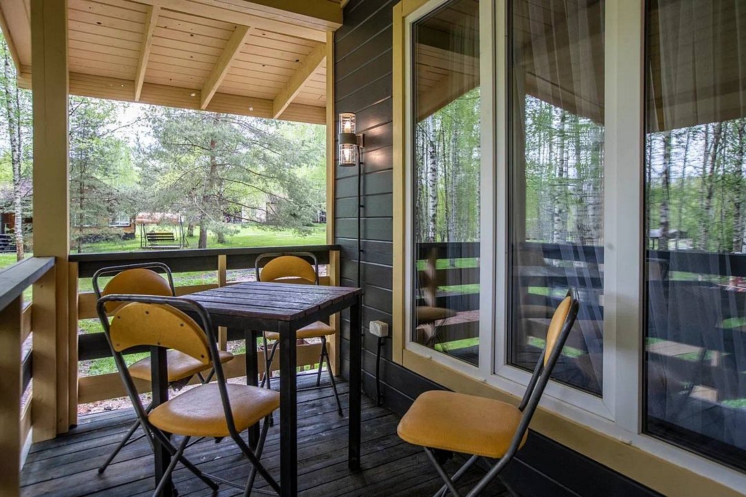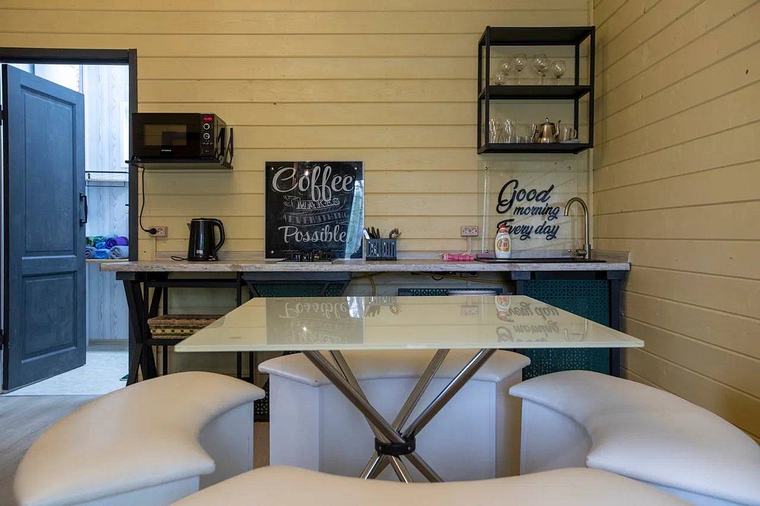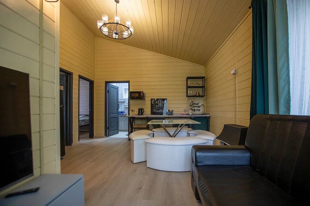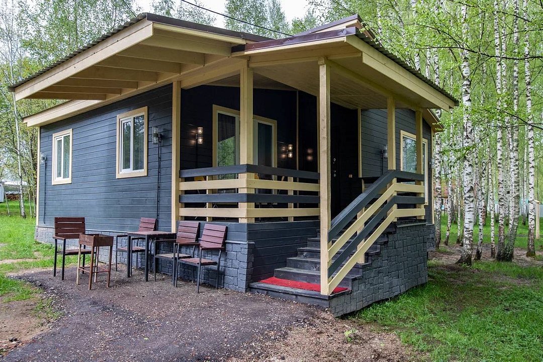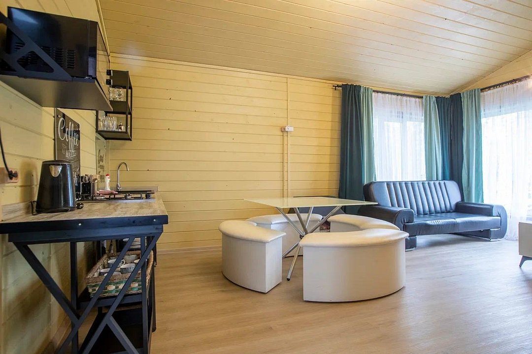 Коттедж ВИП площадью 50м2 с большими панорамными окнами и огромной террасой. Комфортное размещение для 2-3 человек.