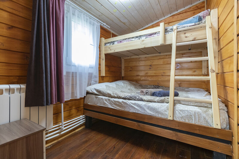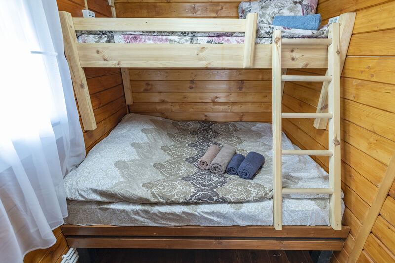 Одна двуспальная кровать, одна диван-кровать, одна двухъярусная кроватьВ мини-доме