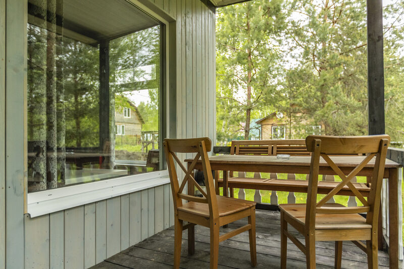 У каждого коттеджа есть веранда с садовой мебелью и местом для мангала.