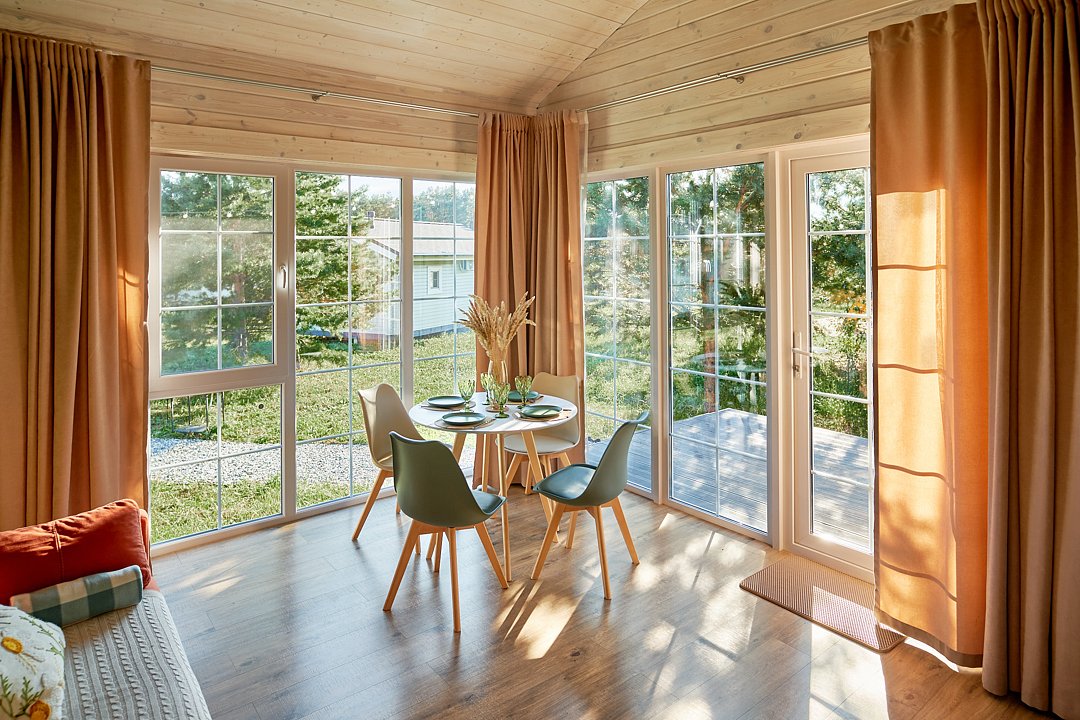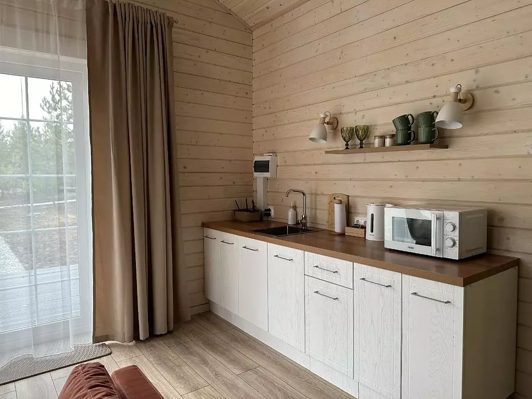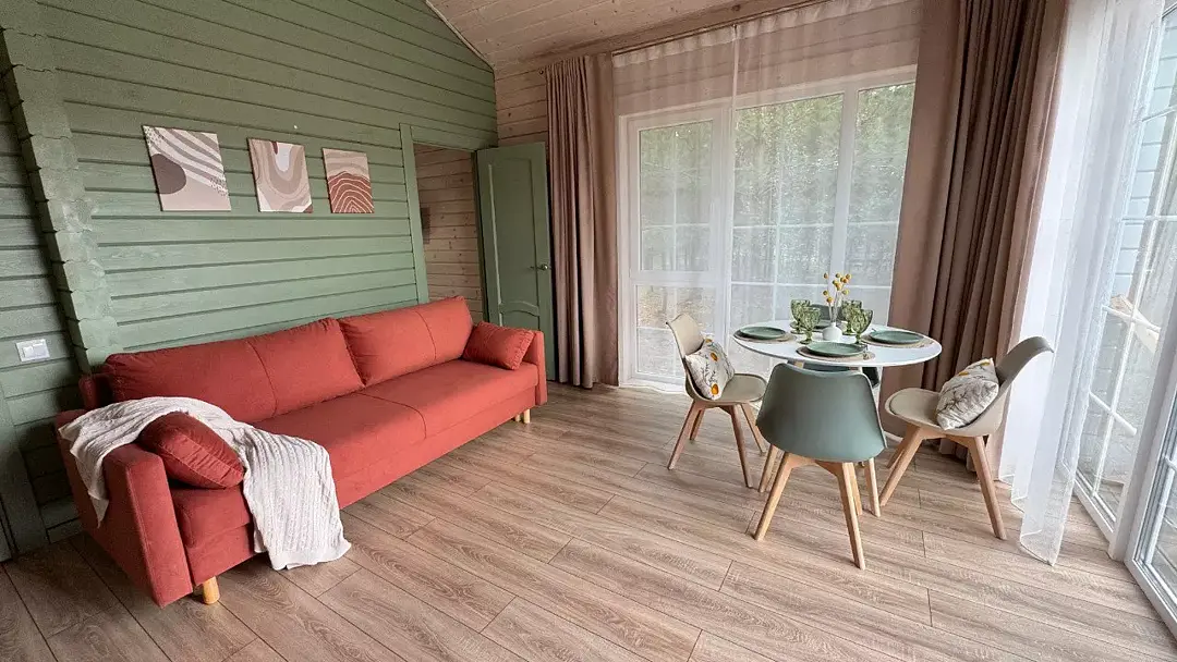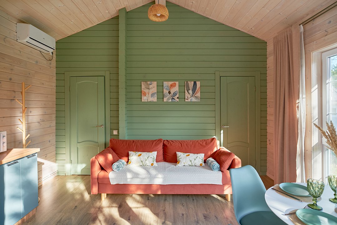 Эко-дома рассчитаны на размещение до 4-х гостей. Спальные места: 2-спальная кровать + диван-кровать.