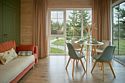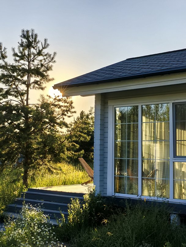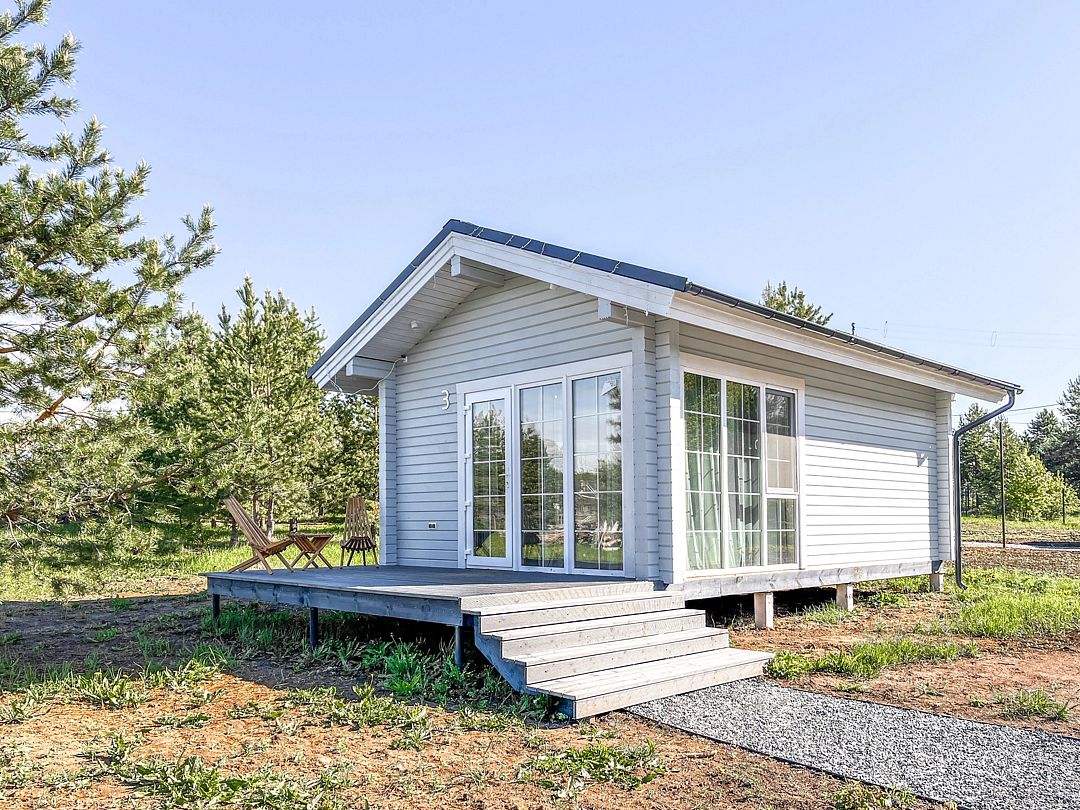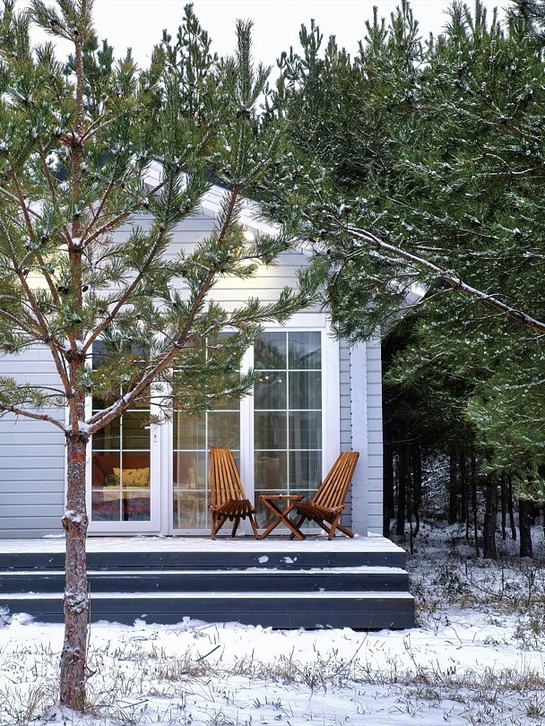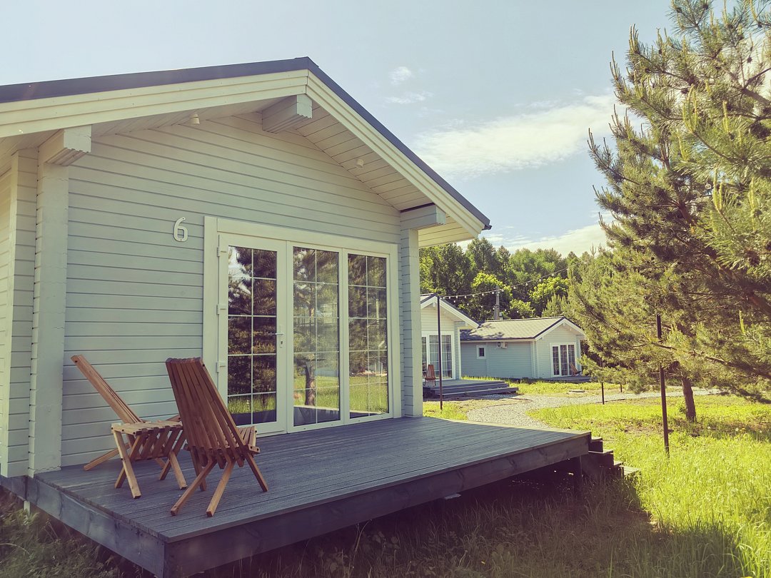 Комфортабельные гостевые дома из клееного бруса и с террасами из лиственницы рассчитаны на размещение до 4х гостей: 2, 2+1, 2+2.