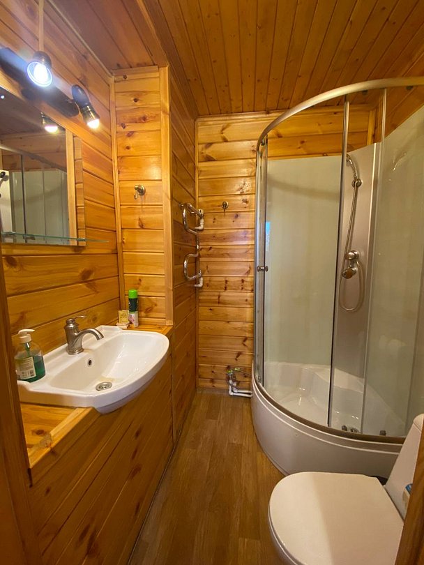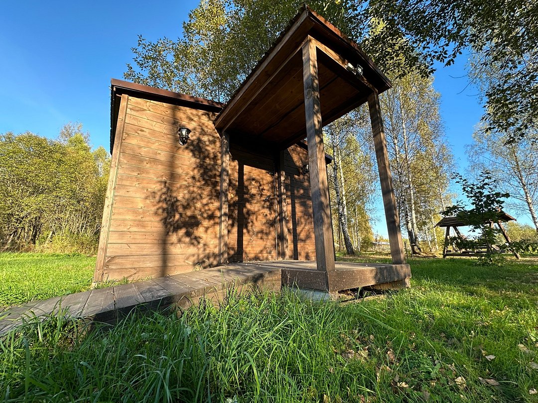 Для комфортного проживания гостей в основном доме оборудованы уютные номера. На первом этаже вас ждет просторная общая кухня со всей необходимой техникой и посудой, а на втором — санузлы и душевые. Рядом расположена уютная беседка, где можно отдохнуть после насыщенного дня.
