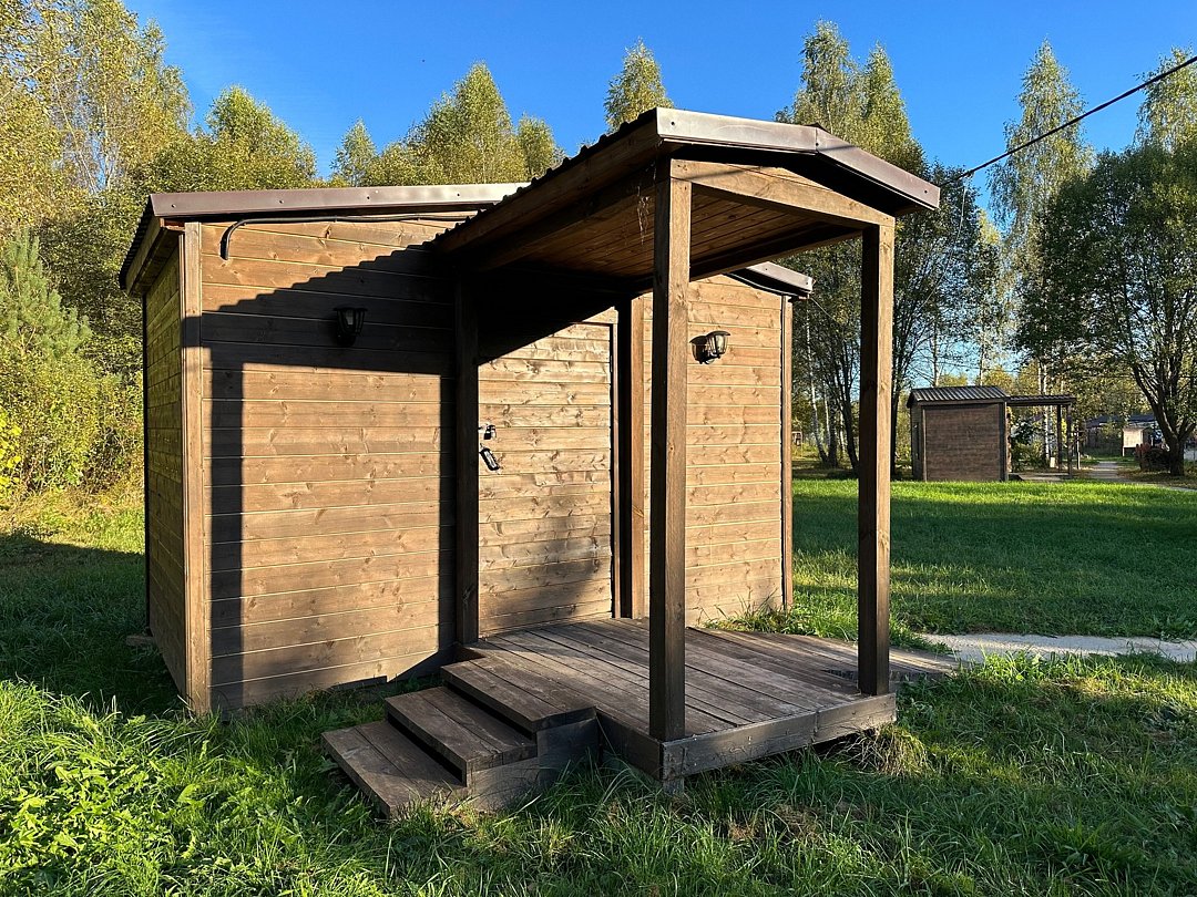 Общие туалеты и гостевой душ на территории.