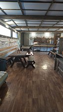 Столы, скамейки, электронагреватель воды на 60 чашек: кофе/чай, санузел, 3 раковины, 2 камина печки, мангальная зона на улице.