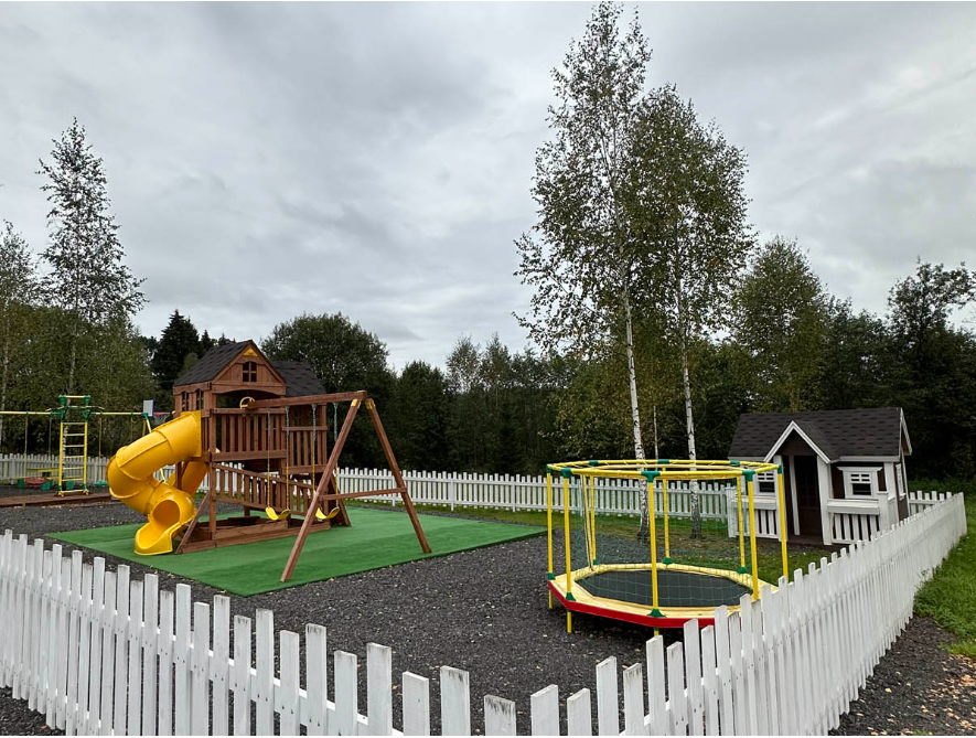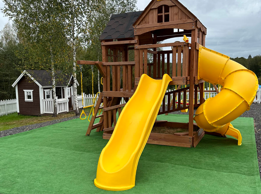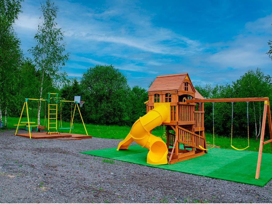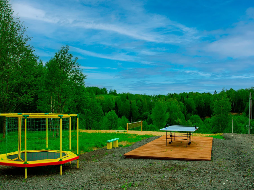 Для семейного отдыха предусмотрены батут, качели, стол для настольного тенниса, площадка для бадминтона и баскетбольное кольцо, поэтому и дети, и взрослые найдут развлечения по вкусу.
