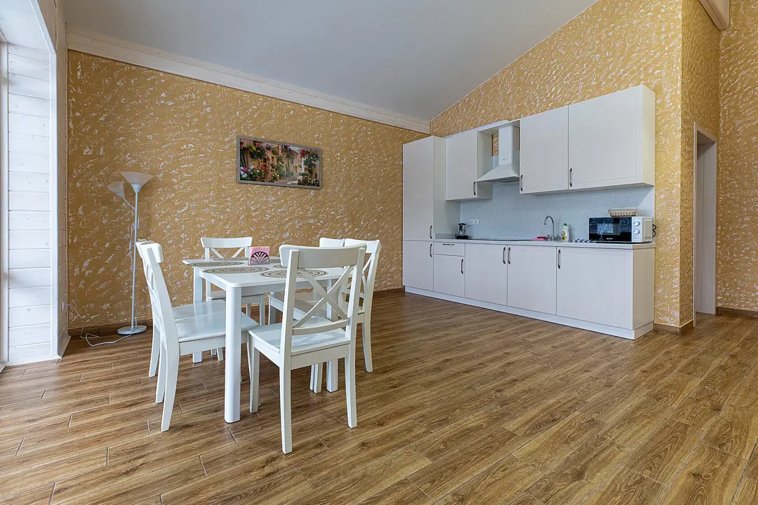 Для размещения предлагаются уютные одноэтажные коттеджи, а также современный дуплекс, вмещающий до 18 гостей одновременно.