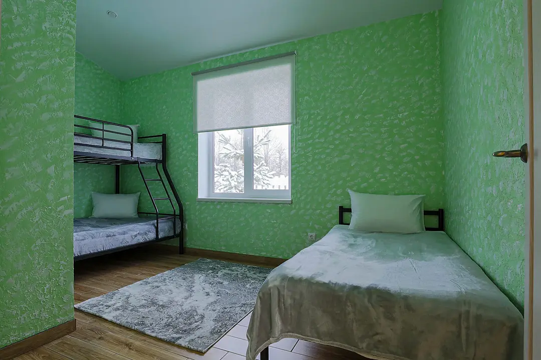 Одна односпальная кровать, одна двуспальная кровать, одна диван-кровать, одна двухъярусная кроватьВ доме