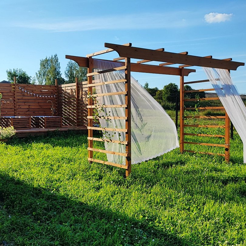На территории оборудована костровая зона (чаша, гриль решетка, шампура), детская площадка и lounge зона c ваннами под открытым небом (летний сезон). Всегда готова принимать гостей баня на дровах с липовой парной.