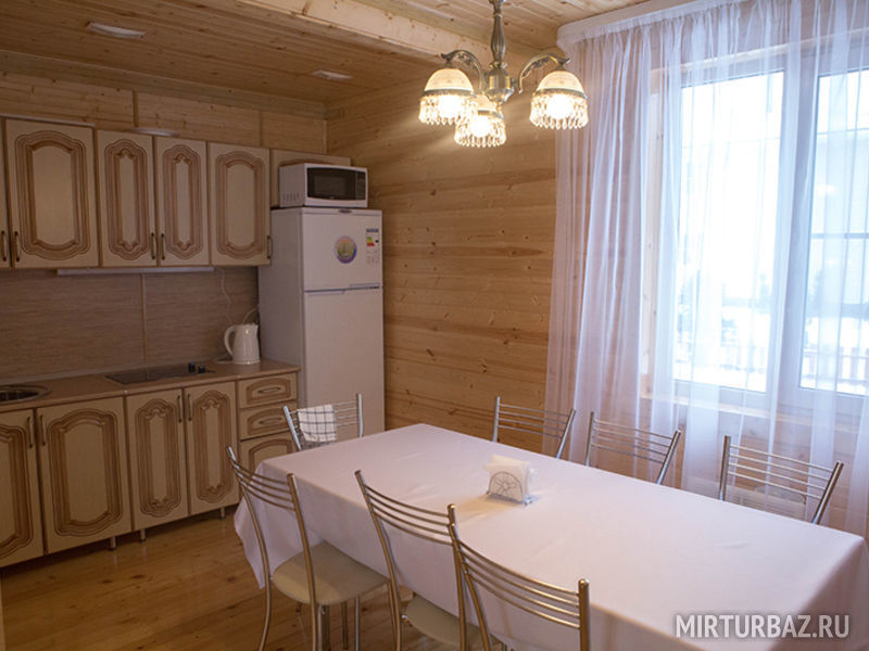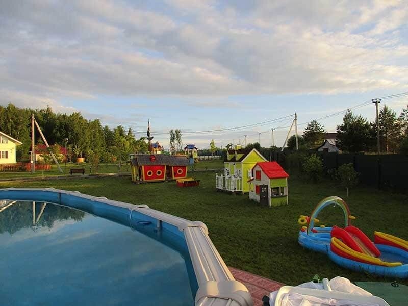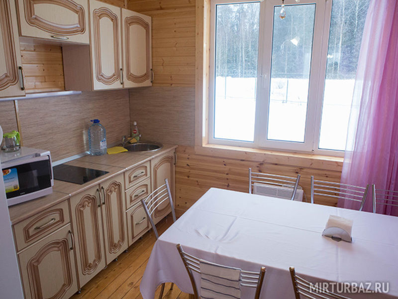 Путешествие с семьейСмешанные впечатленияОтдыхали семьёй в январе 2019 года. Дом на 8 человек оказался очень маленький: маленькая прихожая, маленькая кухня и гостиная. На кухне за столом все не помещались, приходилось детей отсаживать за стол в гостиной. В доме много недоделок: не закрываются двери в санузлы и спальни, негде сушить детские вещи после прогулок, везде очень тесно, в душевой кабине можно только стоять, вытянув руки вдоль тела. Расположение коттеджей - в ряд вдоль дороги, так что когда будете жарить шашлыки придётся общаться с соседями. Заборов и деревьев между домиками нет. Негативное впечатление от дома было компенсировано анимационной программой: для детей каждый день устраивали представления, катали на пони и снегоходе. На территории есть каток и большая детская площадка, а также небольшой зооуголок . Хороший ресторан с вкусной едой и внимательным обслуживанием. Отдельная история про баню: мы её резервировали заранее, 3 т.₽. отдали при заезде. Когда мы пришли париться, оказалось, что это баня- бочка, в которой ужасно тесно, в ней нет душа и в ней нельзя пользоваться вениками. Вода наливается в шайку из разных кранов: горячая вода из крана в парилке, холодная в тамбуре. Если бы знали, ни за что бы не пошли.