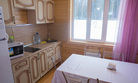 На кухне встроенная мебель, со встроенной техникой и холодильником, столовой и кухонной посудой, рассчитанной на 4-х человек, обеденный стол.